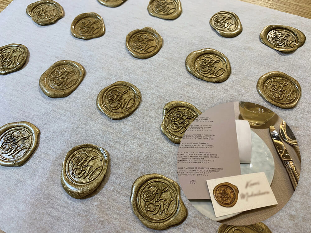 招待状の、切手シールや席札に使うシーリングスタンプを作成しました。時間ができたおかげでペーパーアイテムをさらに自分らしくオシャレにアレンジできました。