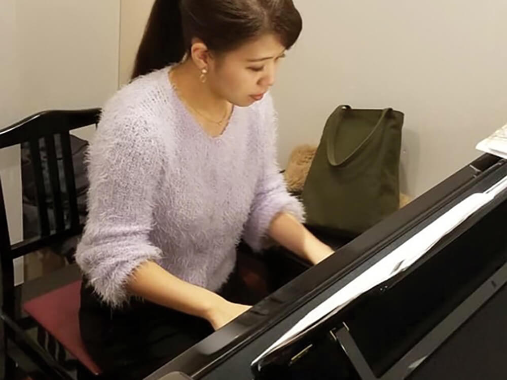 披露宴で演奏する<br data-src= ピアノ練習に励んでいる">