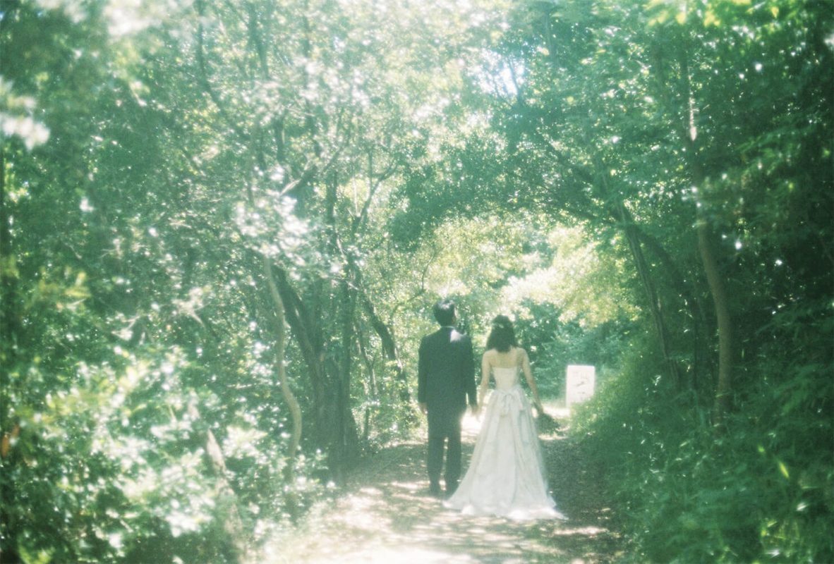 青々と生い茂る緑が美しい森で見つけた、光が降り注ぐ空間。これからの未来へ向かうように立つふたりの後ろ姿があまりにもキレイで、シャッターを押した一枚。