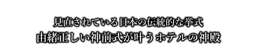 神社での古式ゆかしい儀式には憧れるけど、雨が降ったらどうしようと不安なカップルは多い。ホテル内神殿なら、当日の晴雨に左右されることなく儀式を執り行うことができる。